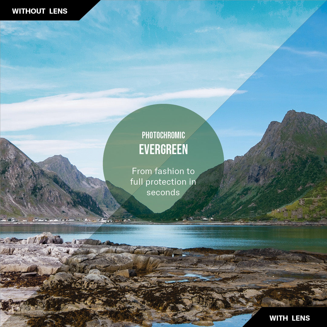 Conoce la lente que se adapta a ti. La lente Evergreen Photo cambia sin esfuerzo de claro a oscuro, adaptándose a cualquier entorno mientras reduce el deslumbramiento y bloquea los rayos UV. El sutil espejo verde realza cada detalle, ya sea que estés en la carretera o entre los árboles.